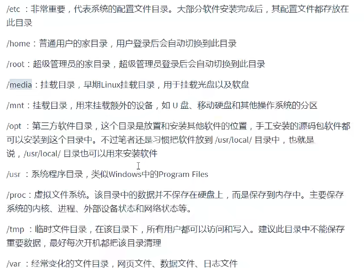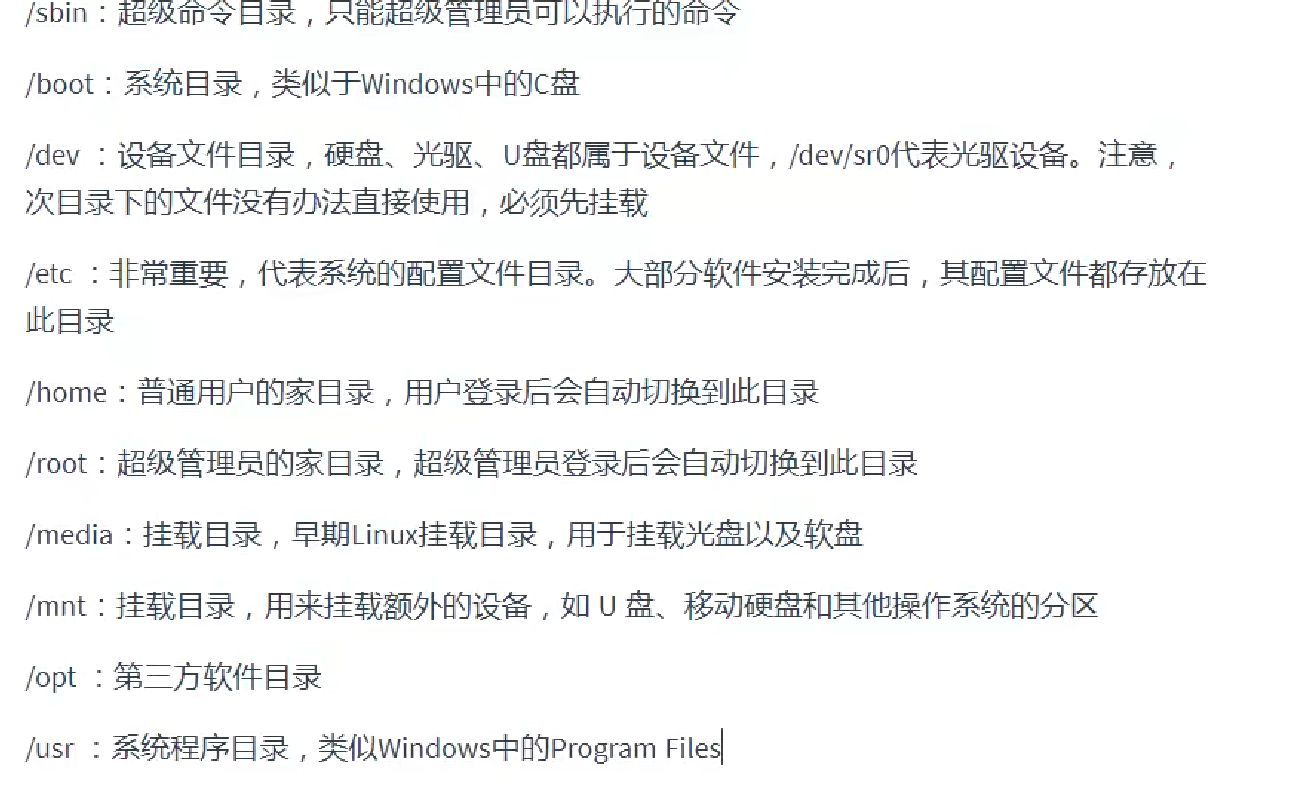 linux学习笔记 3.linux系统的目录结构 1.linux分区 linux只有一个根目录,所有文件以及资源都储存在根目录(/)为树根的树形目录结构中 2.linux系统文件架构 3.linux系统的文件目录用途 1.linux分区linux只有一个根目录,所有文件以及资源都储存在根目录(/)为树根的树形目录结构中2.linux系统文件架构3.linux系统的文件目录用途