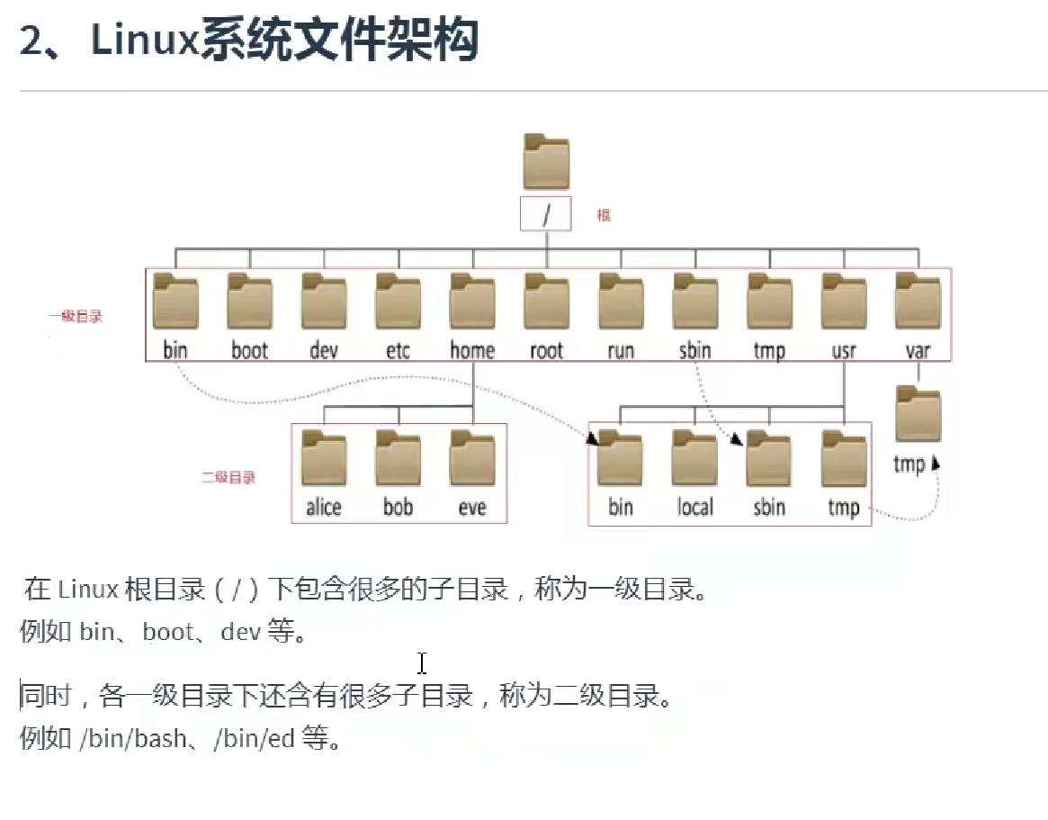 linux学习笔记 3.linux系统的目录结构 1.linux分区 linux只有一个根目录,所有文件以及资源都储存在根目录(/)为树根的树形目录结构中 2.linux系统文件架构 3.linux系统的文件目录用途 1.linux分区linux只有一个根目录,所有文件以及资源都储存在根目录(/)为树根的树形目录结构中2.linux系统文件架构3.linux系统的文件目录用途
